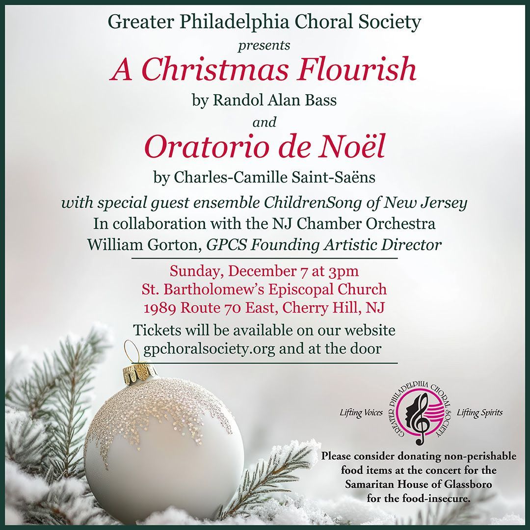 Join the Greater Philadelphia Choral Society, Sunday, December 7 at 3 pm at St. Bartholomew's Episcopal Church in Cherry Hill, NJ for our Winter Concert – a joyful celebration of the season featuring players from the New Jersey Chamber Orchestra and with special guest ensemble ChildrenSong of New Jersey.
